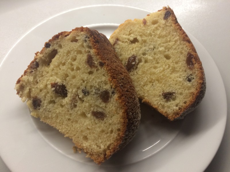 Die Form fetten und die Rosinen mit Mehl bestäuben. Nach den 10 Minuten Kneten vorsichtig unterrühren.