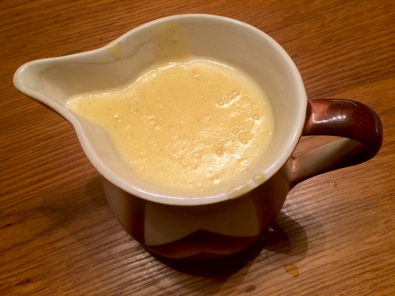 - Die Milch von der Platte nehmen und Eimasse unterrühren